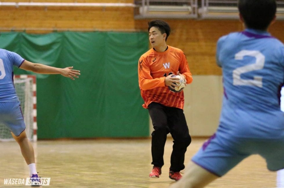 早大Bは、スターティングメンバーに4人の1年生を起用して挑んだ。相手に2点を先取されたが、直後に西村悠吾(人1=千葉・市川)のシュートで応戦する。初出場となったGK大武蓮(社1=神奈川・川和)のナイスセーブもあり、まずまずの立ち上がりを見せた。しかし、徐々に流れは筑波大Bへ。攻撃時のパスミスをことごとく相手の得点につなげられ、11分で2-8と6点差を付けられた。終盤は西村や村松涼雅(商1=岩手・不来方)が速攻で得点し食い下がったものの、9-12で第1セットを落とした。