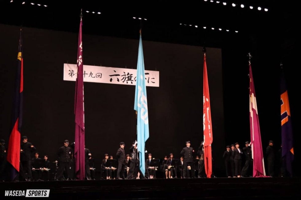 東京六大学野球春季リーグ戦終了後、六大学の応援部、団、指導部が集結する『六旗の下に』。今年で69回目を迎える伝統のステージも、過去2年は新型コロナウイルス感染症拡大の影響によりオンラインでの開催となった。そして今年、ようやく対面での開催が可能となり、六大学の応援団が横須賀芸術劇場にて一堂に会した。各大学のステージが披露されるとともに、六大学が共演するフィナーレで会場を沸かせた。