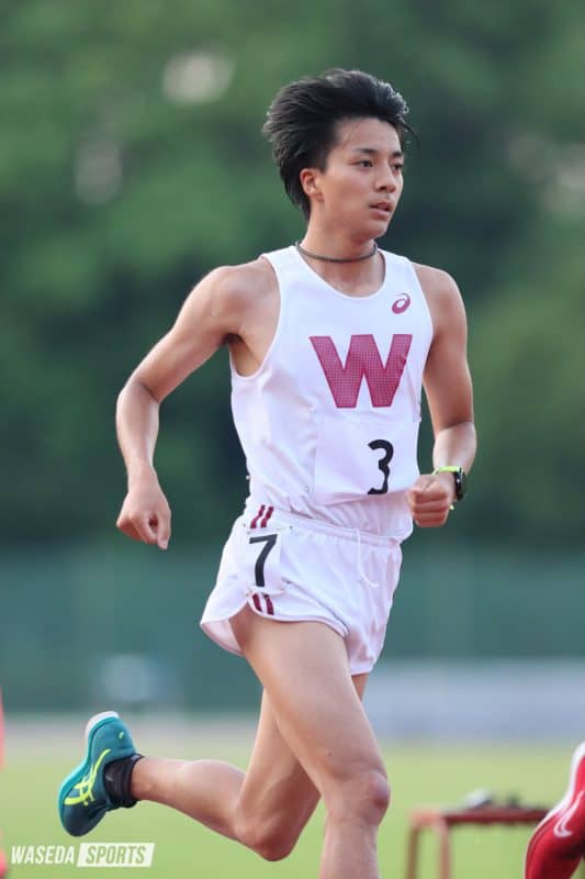 今回は復帰レースということで短い距離から復帰の目処を立てようと1500メートルに出場しました。目標としては4分切りを1つの目安にしていたのですが、井川さん(井川龍人、スポ4=熊本・九州学院)と坂本(坂本達哉、教3=東京・淑徳巣鴨)が結構早いペースでいくということだったので、リズムをうまく使えればあわよくば自己ベストというのも狙っていました。記録は3分59秒7ぐらいで1つの目安はクリアできたので復帰の目処を立てるというところでは良かったのかなと思います。