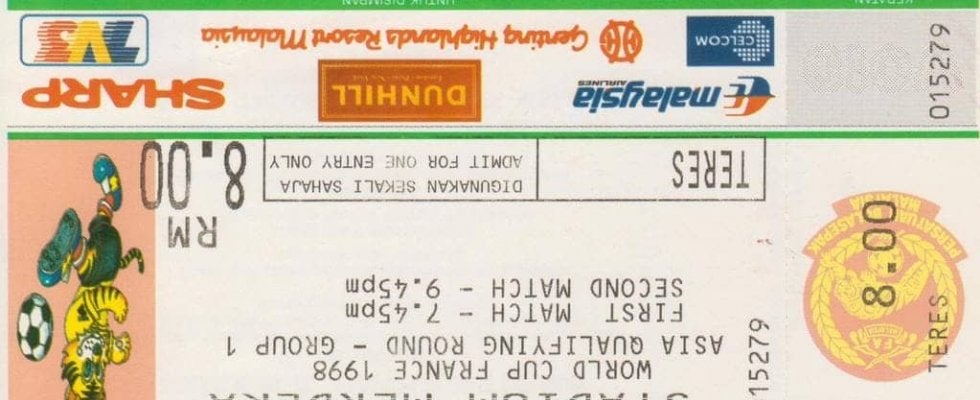 サウジが所属したフランスW杯1次予選第1組。マレーシア・ラウンドの入場券 提供/後藤健生