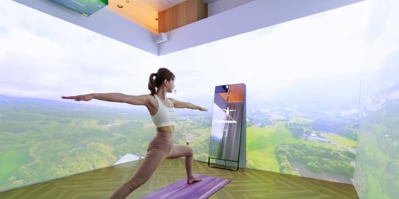個室では、壁全面に迫力あるプロジェクターの映像を投影し、没入感を味わいながらMIRROR FIT.を使ったフィットネスを楽しめます。