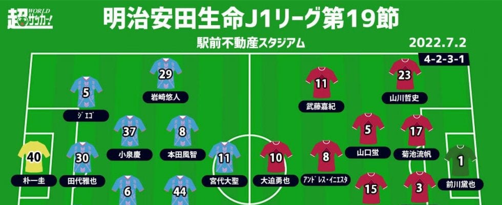 【明治安田生命J1リーグ第19節】 2022年7月2日(土) 19:30キックオフ サガン鳥栖(6位/27pt) vs …