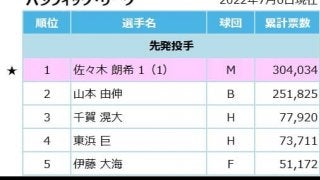 “怪物”佐々木朗希がファン投票で初選出!高卒ルーキー・松川虎生と球宴舞台でもバッテリー結成!両リーグ最多得票は埼玉西武・山川穂高!
