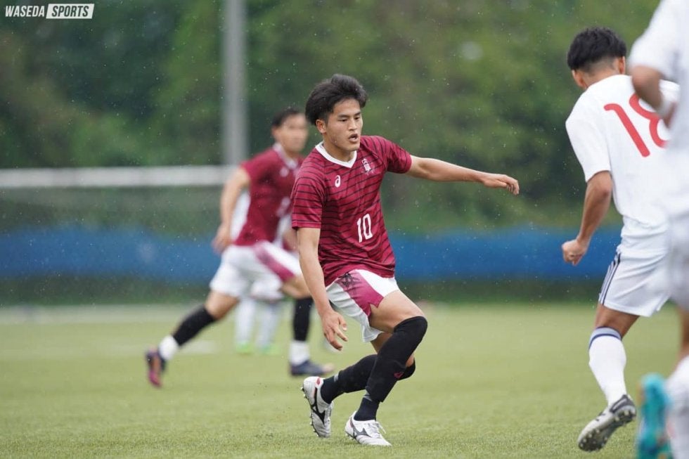今季は背番号「10」を背負い、まさに「ア式の心臓」として活躍している植村。彼の魅力は積極的な攻撃参加とボールを持った時の推進力だ。今季は得点こそまだないが、明大戦で見せた深い位置に侵入してからのアシストなど、攻撃時の存在感が際立っている。また、中盤の多くのポジションをこなし、試合中も状況に応じて立ち位置を変えながらプレーできることも売りだ。