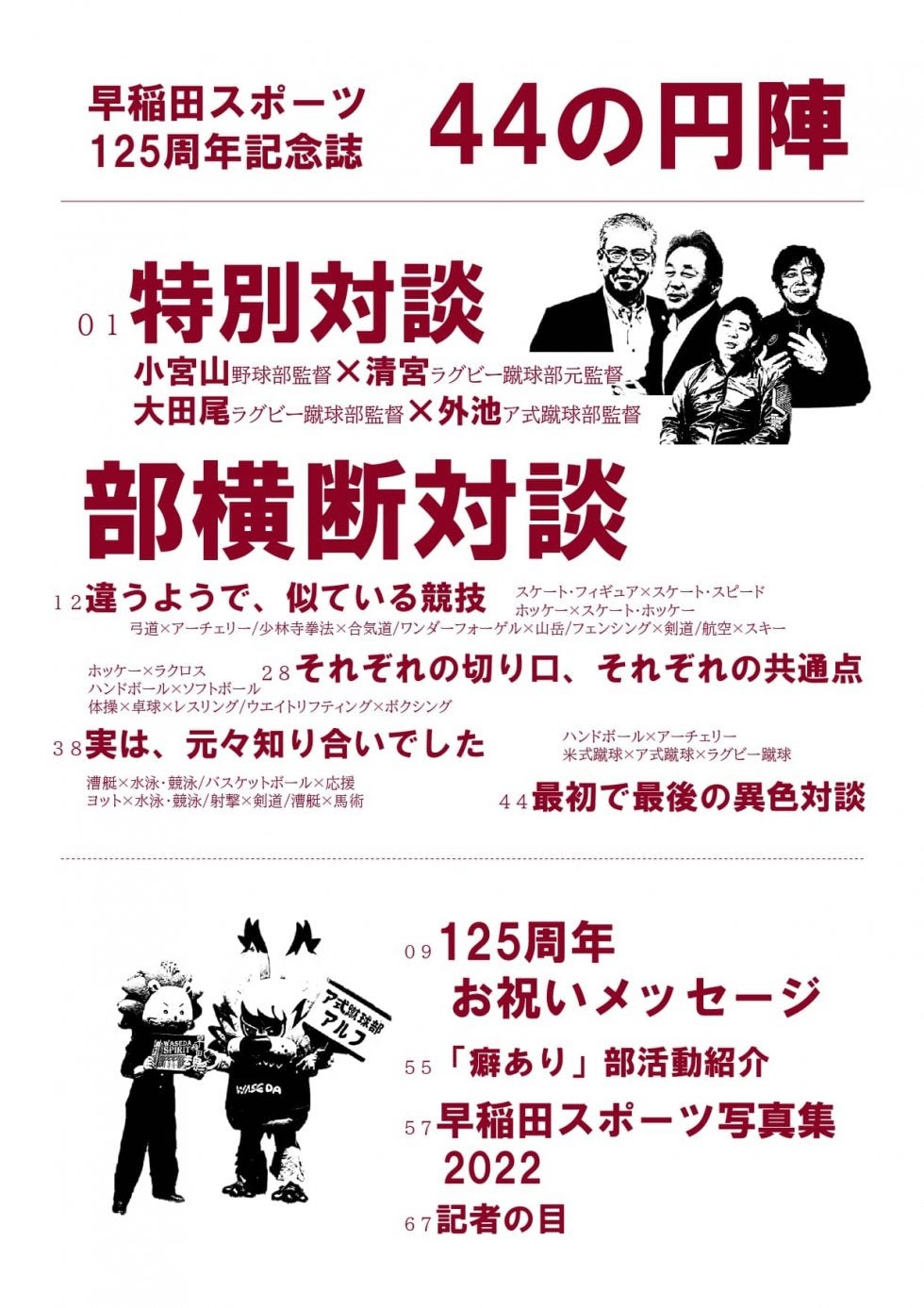 「早稲田スポーツ」の125周年を記念して、早稲田スポーツ新聞会では『44の円陣』(早稲田スポーツ125周年記念誌)を発行します。