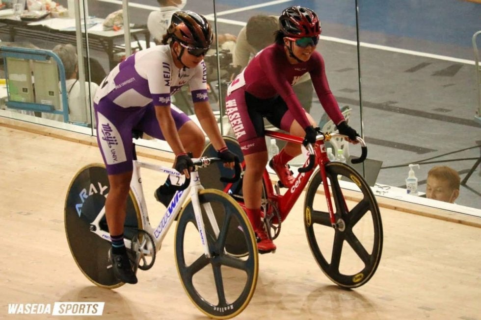 初日、最初の種目である男子タンデムスプリント予選。この種目では2人乗りの自転車を使うため、両者の呼吸を合わせることが鍵となる。早大からは佐藤威吹主将(スポ4=岩手・紫波総合)と細田悠太(スポ4=鹿児島・南大隅)のペアが出場したが、結果は10位。予選通過とはならなかった。その後スプリントを挟んで迎えた男子ポイントレース予選1組に美甘星次郎(スポ2=鳥取・倉吉総合産)が出場。しかし、結果は13位と決勝進出とはならず。続く女子のポイントレース決勝には大蔵こころ(スポ1=愛媛・松山学院)が出場し、結果は全体4位。「消極的なレースになってしまった」(大蔵)と優勝を目指していただけに悔しいレースとなった。午前中最後の種目はケイリン第1回戦。各組1位が1/2決勝に進める中、6組で出場した佐藤は3位と敗者復活戦へまわる。その後の敗者復活戦でも良い位置取りを取れず、1/2決勝進出とはならなかった。