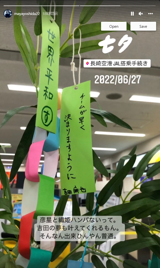 シャルケ所属の吉田麻也が7日、自身のインスタグラムを更新。@mayayoshida22より吉田は「彦星と織姫ハンパないっ…