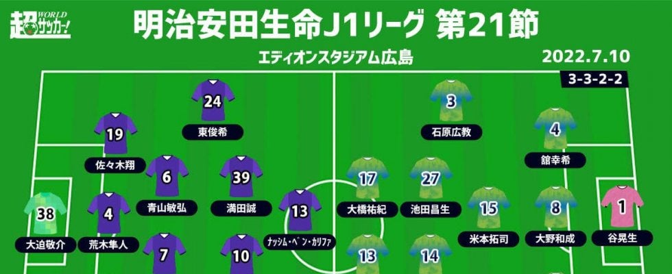 【明治安田生命J1リーグ第21節】 2022年7月10日(日) 18:00キックオフ サンフレッチェ広島(4位/33pt…