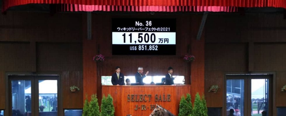 11日、北海道苫小牧にあるノーザンホースパークで、日本最大のサラブレッド市場「セレクトセール2022」が開催。1歳馬セールにて上場番号36番・ウィキッドリーパーフェクトの2021(牡)が1億1500万円で落札された。