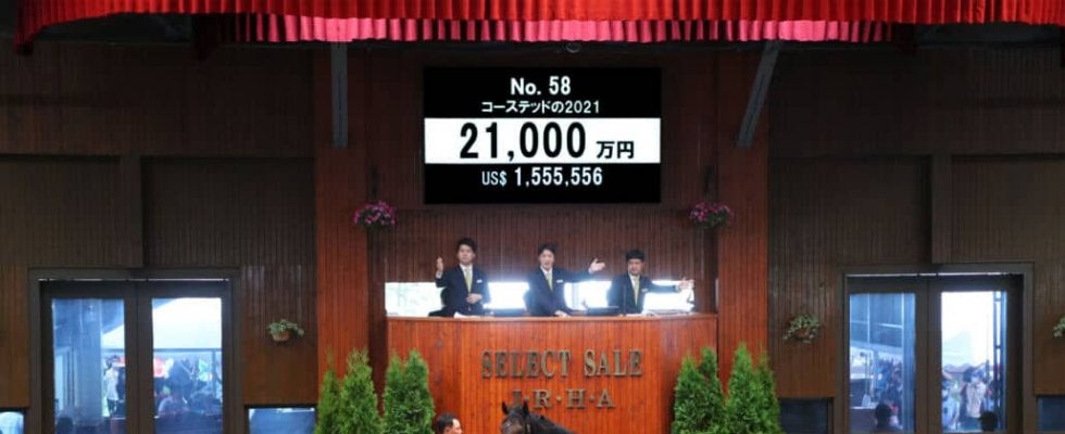 11日、北海道苫小牧にあるノーザンホースパークで、日本最大のサラブレッド市場「セレクトセール2022」が開催。1歳馬セールにて上場番号58番・コーステッドの2021(牝)が2億1000万円で落札された。