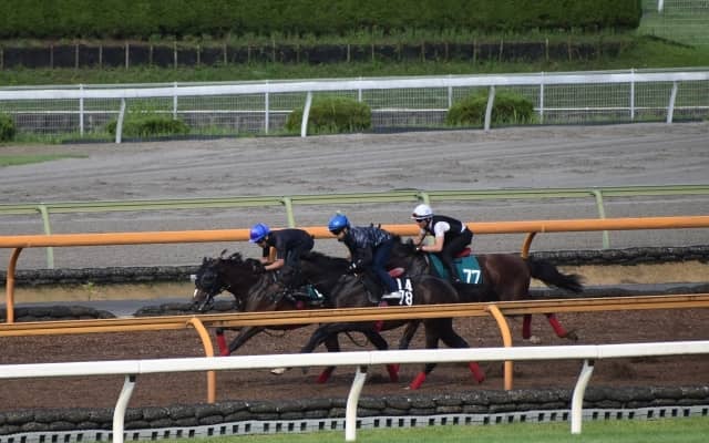 17日(日)に出走予定のマテンロウプラウド(写真中央、7月6日撮影:井内利彰)