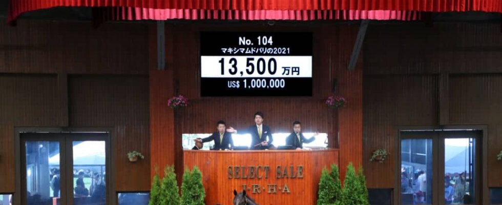 11日、北海道苫小牧にあるノーザンホースパークで、日本最大のサラブレッド市場「セレクトセール2022」が開催。1歳馬セールにて上場番号104番・マキシマムドパリの2021(牡)が1億3500万円で落札された。