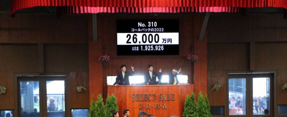 12日、北海道苫小牧にあるノーザンホースパークで、日本最大のサラブレッド市場「セレクトセール2022」が開催。当歳馬セールにて上場番号310番・コールバックの2022(牡)が2億6000万円で落札された。