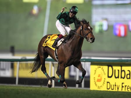2014年のドバイデューティフリーを勝利した当時のジャスタウェイ(撮影:高橋正和)