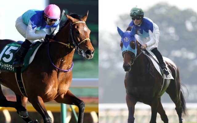 ジュンツバメガエシの兄にあたるアドマイヤラクティ(左)とアドマイヤジャスタ(右)(撮影:下野雄規)