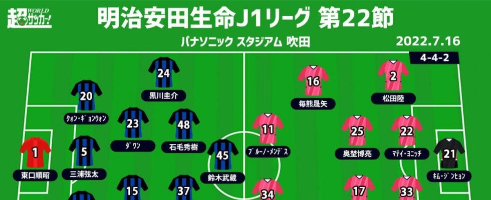 【明治安田生命J1リーグ第22節】 2022年7月16日(水) 19:00キックオフ ガンバ大阪(15位/21pt) v…