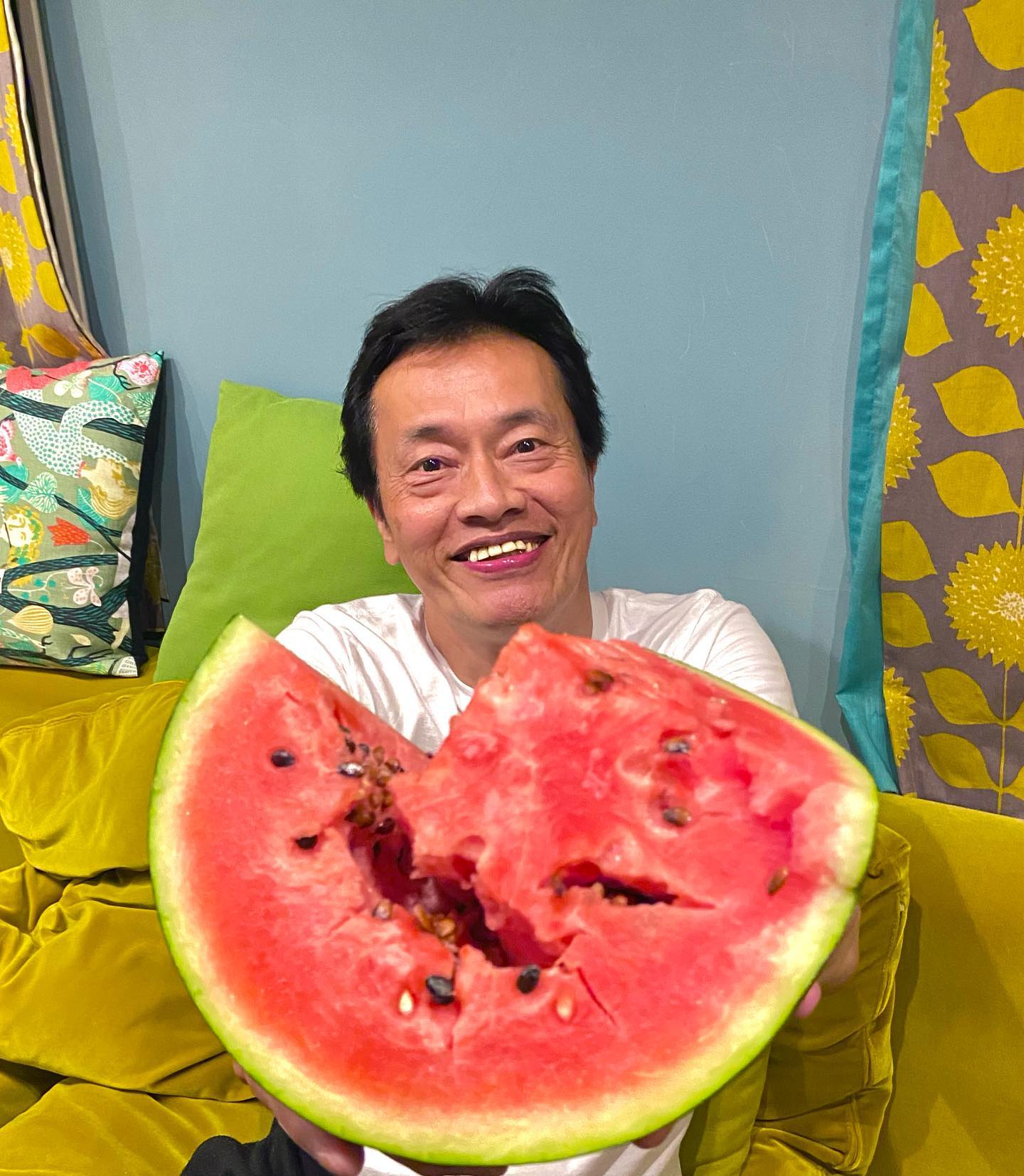 🍉「日本一スイカが似合う男」遠藤憲一さんが大きなスイカを前に満面の笑み😄 | 話題の投稿