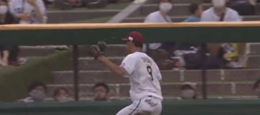 楽天の辰己は左中間ど真ん中の打球を定位置からの猛ダッシュで捕球