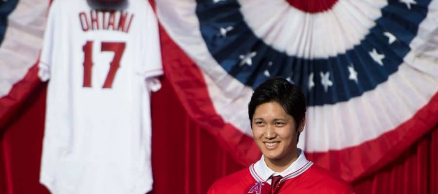 エンゼルス入団会見時の大谷翔平【写真:Getty Image】