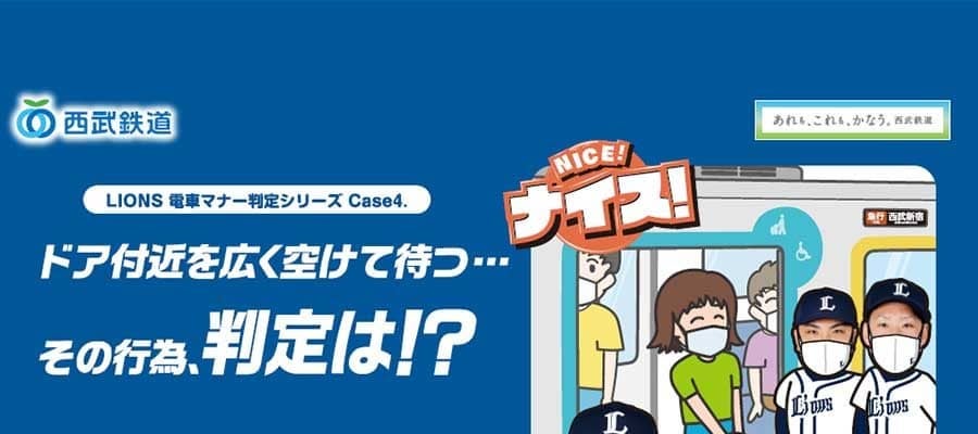 プロ野球・西武と西武鉄道株式会社は、ライオンズの選手たちを起用した電車内マナー啓発企画「LIONS電車マナー判定シリーズ」の中づり・駅ポスターの第4弾を2022年7月22日より西武鉄道の車内・駅構内に順次掲出する。