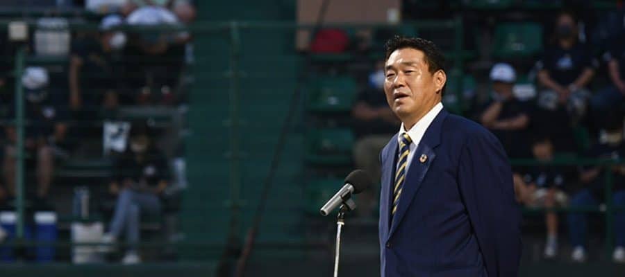 「マルハンインビテーション大倉カップ 第48回全日本選手権大会」の開会式に出席した元阪神・広澤克実理事長【写真:中戸川知世】