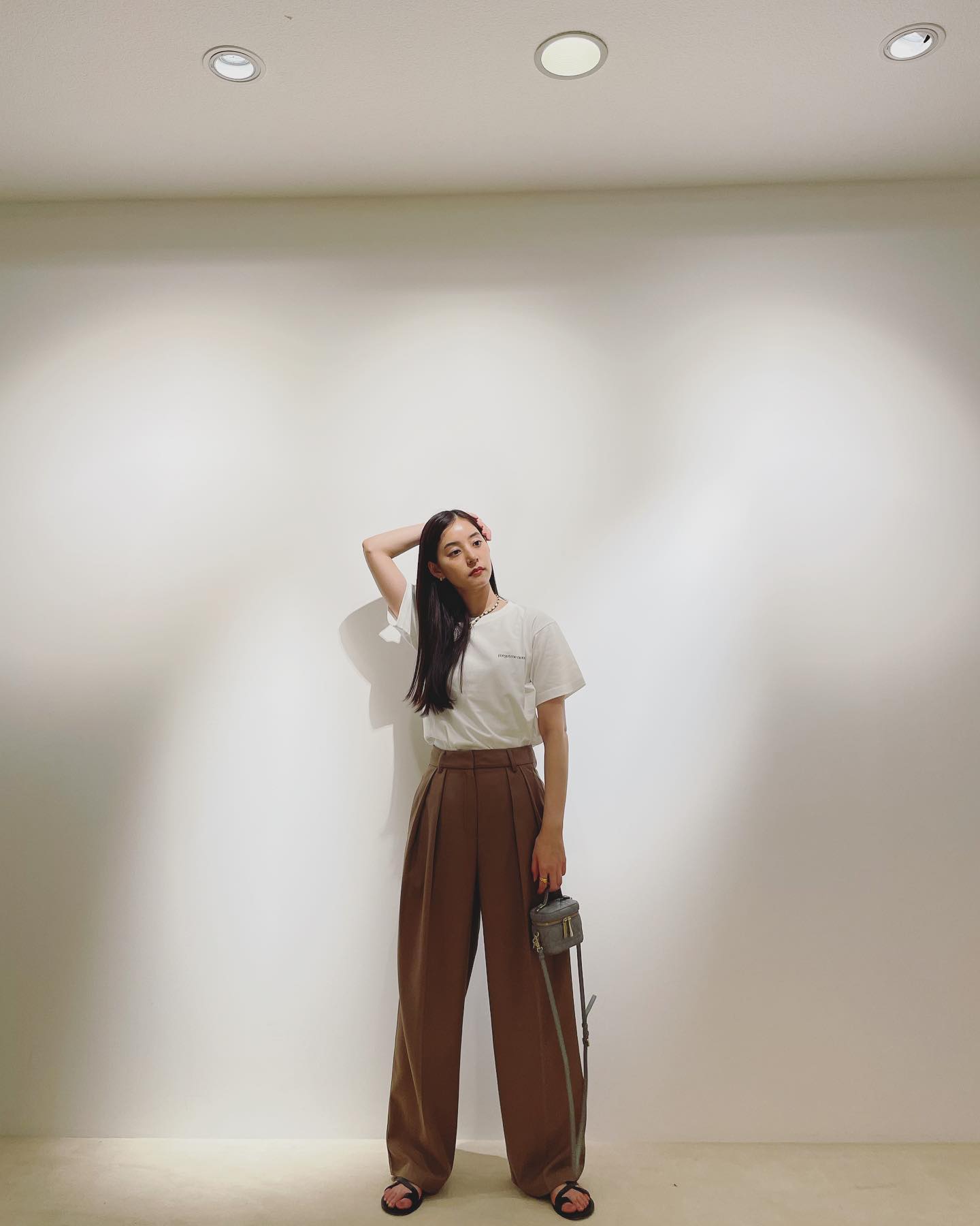 「私服」」とだけ綴り、写真を複数枚投稿。白いTシャツにハイウエストの茶色のワイドパンツを合わせた、抜群のスタイルが映えるコーディネートを披露した。