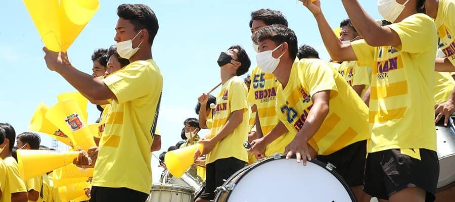 太鼓23個を持ち込んだ立正大淞南の応援団、初戦敗退も強烈な存在感を放った【写真:平野貴也】