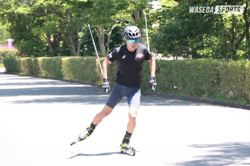 私が個人的に意識しているのは、常に冬場の試合を想定した練習をすることです。ローラースキーも冬の試合と近いかたちで、こういう実践的な練習は夏でも積める部分はあるので、そういうところは海外の選手とかと比べると、夏に雪上に乗れないというのはデメリットではあると思いますが、逆に言えばこういう練習でもスピードトレーニングや実践的な練習ができるのはメリットでもあると思っています。そこをプラスにとらえながら練習することを意識しています。
