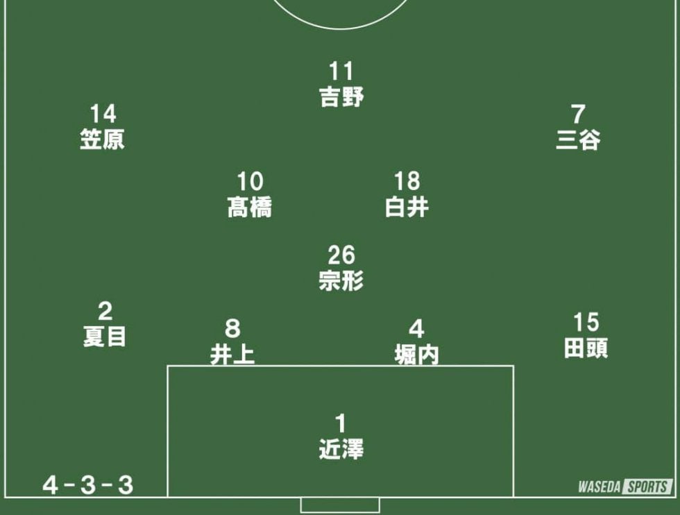 先制ゴール未遂となった白井。激しい中盤争いの中で関カレでの出場機会を増やしつつあり、指揮官の口からも期待の言葉が出た