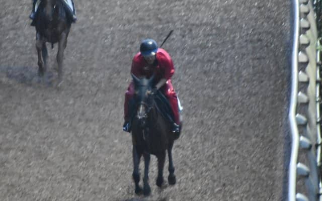 本馬について「もう少し落ち着いてくれれば、という気性面の幼さはありますが、いい馬ですよ。このままデビューに向けて調整するか、一度放牧に出すかは、少し様子を見て決めたいと思います」と松永幹夫調教師。