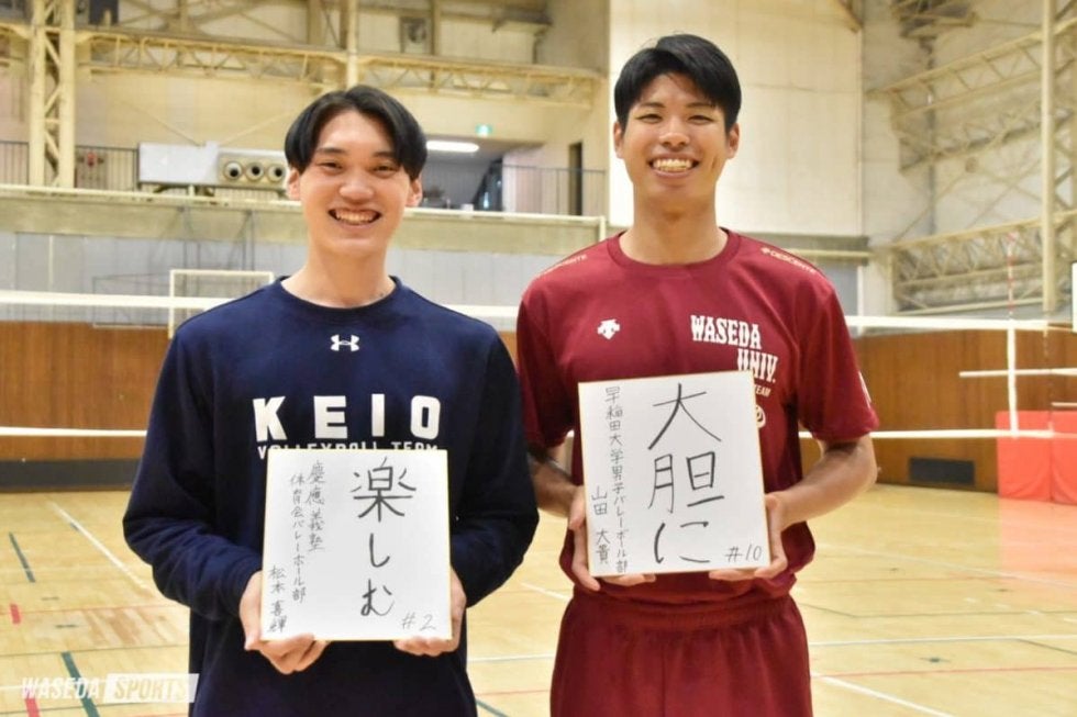 第86回早慶バレーボール定期戦(早慶戦)が7月30日に開催される。早慶定期戦直前対談第2回は、U18男子日本代表(ユース代表)に選出され、共に世界と戦った山田大貴(スポ3=静岡・清水桜が丘)と松本喜輝(慶大)。お互いに実力を認め合い、良きライバル関係である二人にお話を伺った。