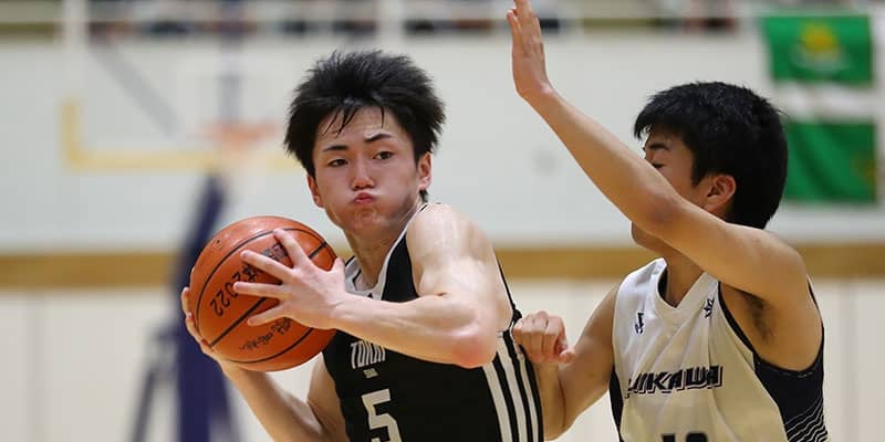 13得点を挙げて勝利に貢献した東海大諏訪の石口(左)だが、それ以上にゴーストスタッツでチームに貢献 [写真]=伊藤 大允