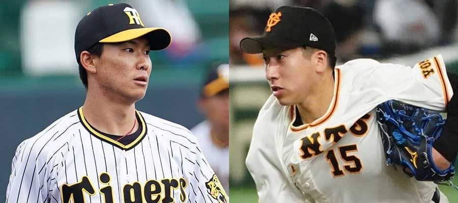 阪神・湯浅京己(左)と巨人・大勢【写真:荒川祐史】