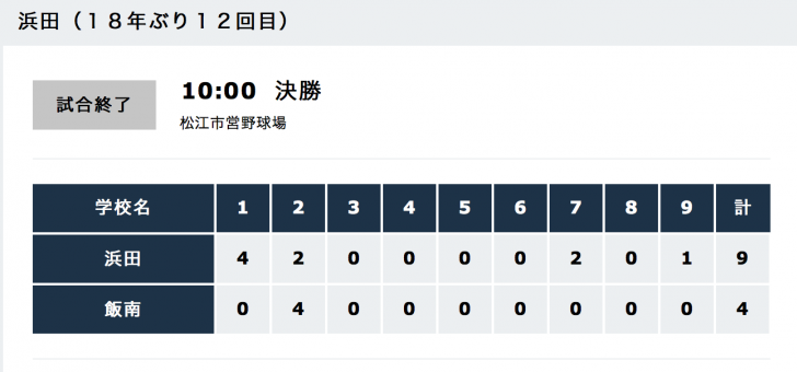 第104回全国高等学校野球選手権・島根大会の決勝が行われた28日、浜田高校が飯南高校に9-4で勝利し、18年ぶり12回目となる夏の甲子園出場を掴み取った。