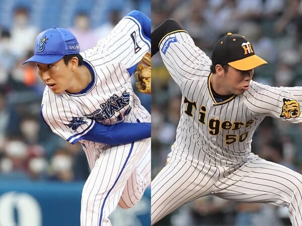 前半戦7勝のDeNA・大貫(左)と、リーグトップの11勝を挙げている阪神・青柳