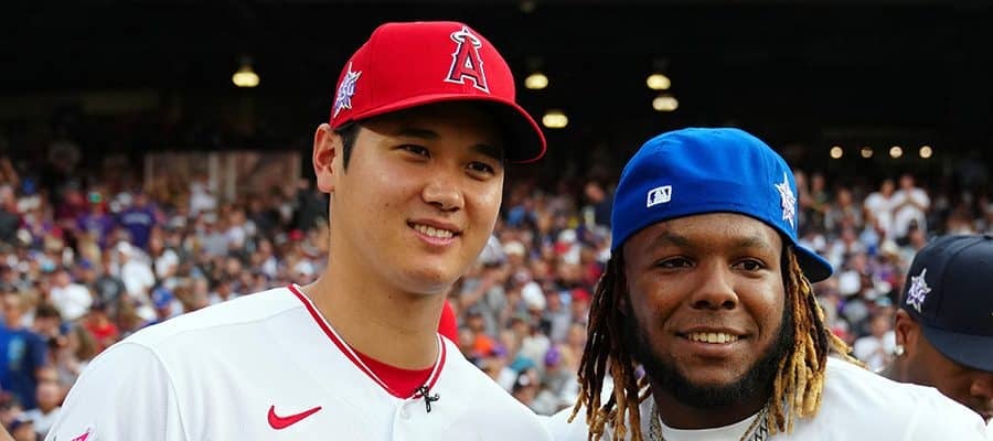 エンゼルス・大谷翔平(左)とブルージェイズのゲレーロJr.【写真:Getty Images】