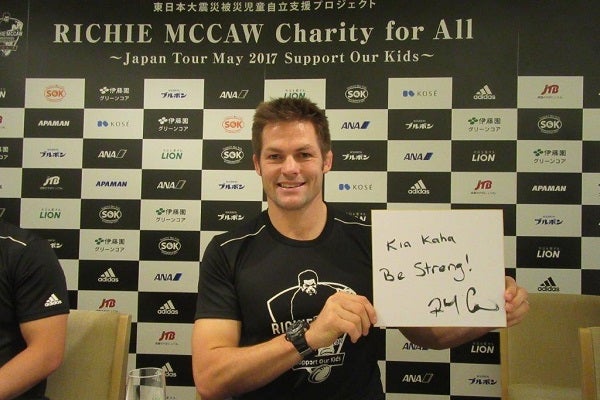ラグビー世界最強チーム・ニュージーランド代表“オールブラックス”で15年間プレー、うち11年間主将を務め、2011、2015年のワールドカップで優勝を収めたリッチー・マコウ氏(36歳)がチャリティイベントのために来日。26日に記者会見が開かれた。マコウ氏は2015年のワールドカップ終了後に引退、現在は現役時代からの趣味だったヘリコプター会社のオーナー兼操縦士として活躍している。