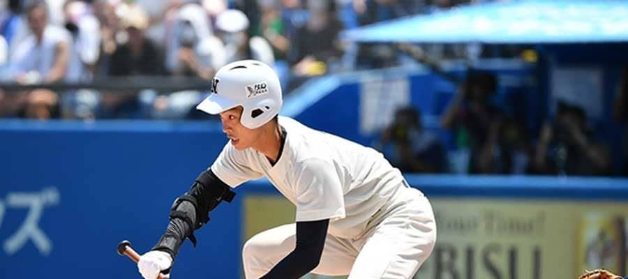 0-2とリードされて迎えた6回の攻撃。日大三は川崎広翔捕手(3年)の2点タイムリーで同点に追いつき、さらに1死一、三塁として、「9番・投手」の松藤孝介(3年)が左打席に立った。カウント1-1からの3球目、投前に勝ち越しスクイズを決め、さらに相手投手の鈴木泰成(3年)の一塁悪送球を誘って、一塁走者まで生還。一気に2点差をつけ、試合の流れをつかんだ。