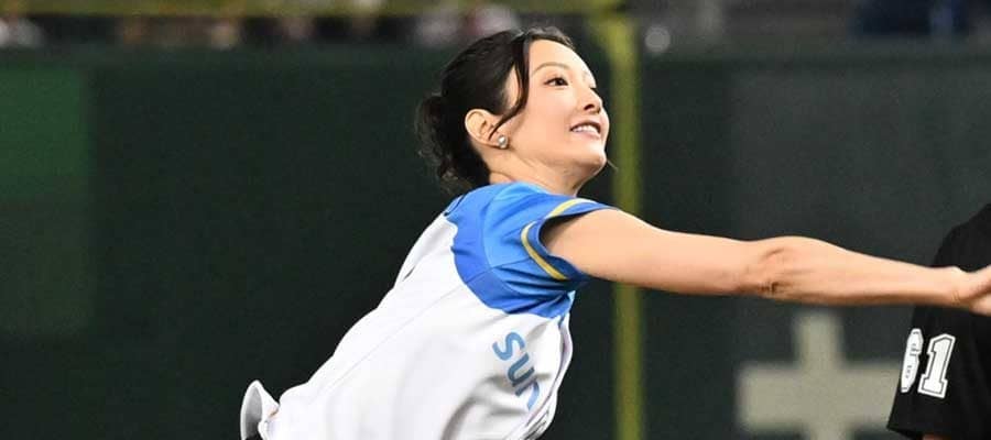 始球式本番では背番号「770」がついた白と青基調の爽やかなユニホームでマウンドへ。打者を務めた古田敦也氏(元ヤクルト)からお尻をセクシーにマウンド方向へ向ける“菜々緒ポーズ”で挑発を食らったが、ボールは山なりながらショートバウンドで谷繁元信氏(元横浜など)のミットに収まった。(Full-Count編集部)