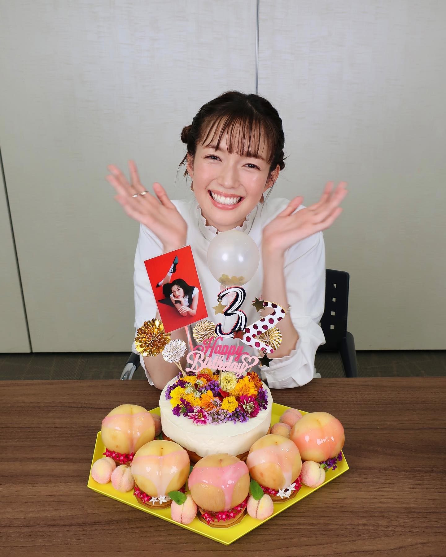 「セクシーな桃たちと🍑」佐藤栞里さんがサプライズケーキに感激✨ | 話題の投稿