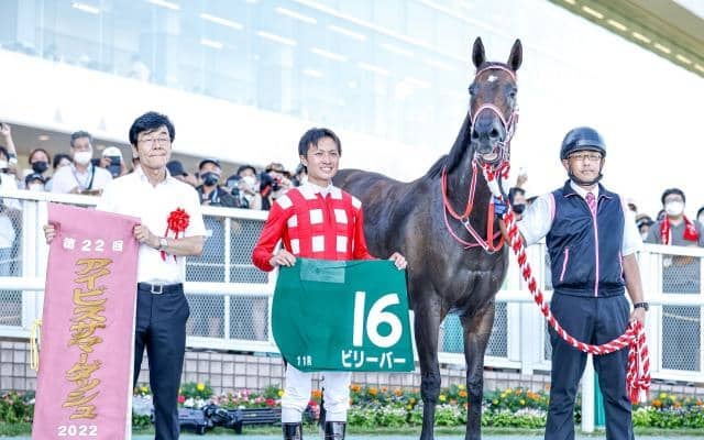 アイビスSDで重賞初勝利したビリーバーと杉原誠人騎手(撮影:下野雄規)