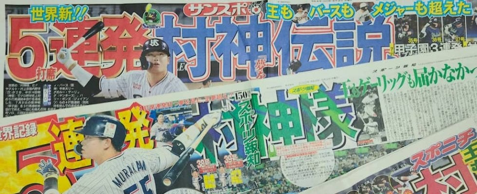 なお、日本で初めて4打席連続弾を放ったのは青田昇(大洋)で1956年5月6日から次の試合にかけて。以降、王貞治(巨人)、長池徳二(阪急)、ランディ・バース(阪神)などこれまで12人。「4打数」連続は、田淵幸一(阪神)、古田敦也、バレンティン、山田哲人(すべてヤクルト)など8人が加わる。2000年代に入ってからの4打席以上連続本塁打は村上が初めてだ。