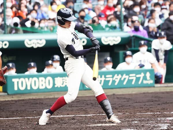 野球界にとって貴重な右打ちの有望遊撃手。大地に根を張るかのような重厚感のある呼び込みから、強烈な打球を生み出す。派手さはないものの、遊撃守備はミスが少なく計算が立ちやすい。奈良大会決勝戦では新型コロナの影響からベストメンバーで戦えなかった相手校に配慮し、優勝後に派手に喜ばないようチーム内に呼びかける一面も。野球の技術面だけでは語り尽くせない、無形の力を持っているスポーツマンだ。甲子園では大会3日目、山梨学院と対戦する。