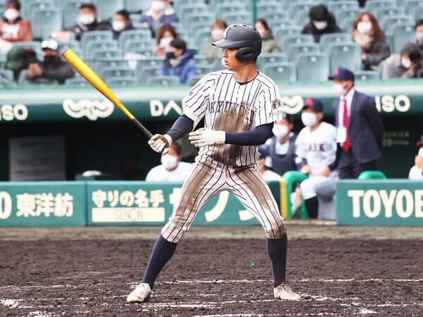 高い次元の総合力で勝負する外野手。「三拍子揃った右投左打の外野手」という本来ならプロ側の需要が低い属性にもかかわらず、ここまで右肩上がりに成長した過程を見てしまえば評価が揺らぐことはないはず。ミートセンスに優れる打撃、スピード感のある走塁、伸びやかなスローイングを誇る外野守備。それらが大人の肉体を獲得するであろう20歳を超えてどこまで進化するのか、楽しみでならない。今春センバツでは2回戦の広陵戦で4安打の固め打ちを見せたが、夏にもうひと暴れを見せられるか。