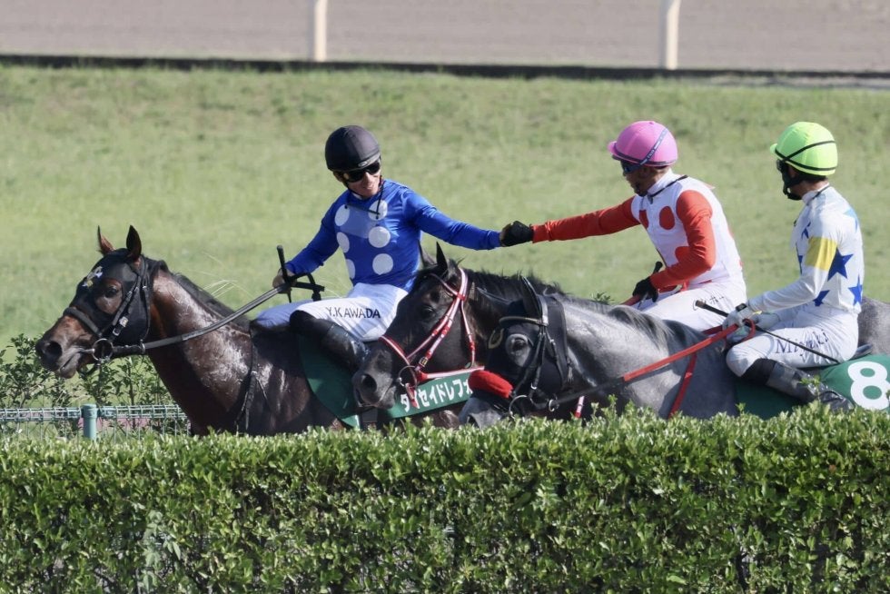 先週から短期免許で来日している、香港のホー騎手がカフジオクタゴンで重賞初制覇を飾った。レースでは大外枠からの巧みに内へ入れていき、中団馬群のインを追走した。馬群を上手く捌いて勝負どころからタイセイドレフォンを見ながらポジションを上げていくと、ゴール前は内からタイセイドレフォン、カフジオクタゴン、ハピの追い比べとなり、真ん中から力強く抜け出した。人馬ともに重賞初勝利。