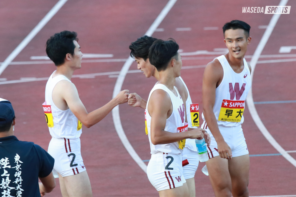 「400の選手が強くなる」。言葉通り関カレから強さを増した4人。関カレぶりのリレーとなった8月7日のトワイライト・ゲームスでは、関カレから2、4走の走順を入れ替えて挑み、1着。前々日までの合宿の疲労もあり、おのおの理想の動きでは無かったというが、走順も「かなりハマっているのかなと思う」(藤好)、「コンディションが十分ではない中で、勝ち切ることができたのは収穫」(眞々田)、と充実感を滲(にじ)ませた。