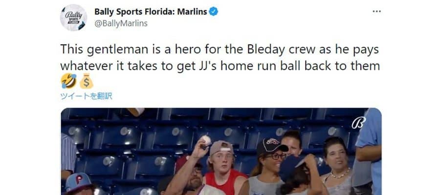 フィリーズvsマーリンズ戦でのワンシーンが話題を集めている(画像は「バリー・スポーツ・フロリダ」マーリンズ専門ツイッターのスクリーンショットより)