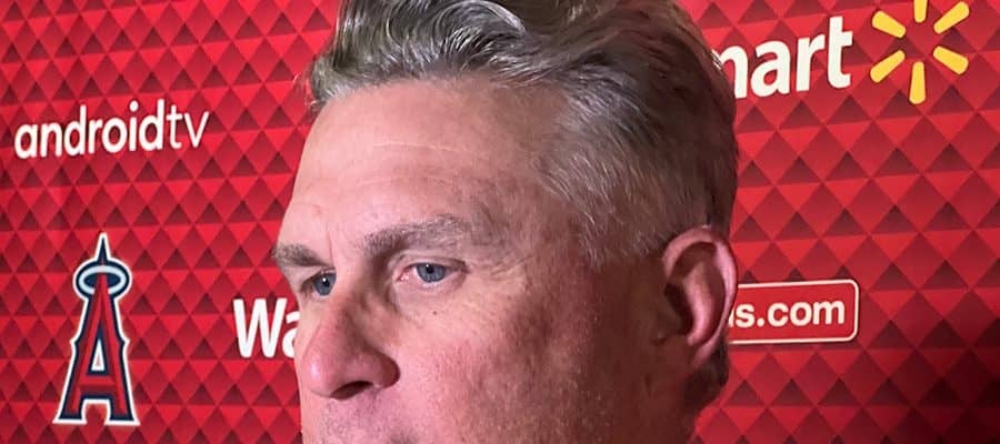 試合後の取材に応じたエンゼルスのフィル・ネビン監督代行【写真:盆子原浩二】