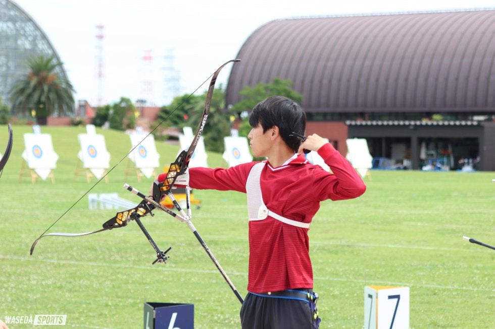 これといって特別なことはしていないです。やっぱり同期の井上(空、創理3=東京・早大学院)だとか柿沼(大翔、教3=東京・早大学院)だったりとかが射型の相談に乗ってくれたり見てくれたりしたので、それがやっぱり良かったのかなと思います。周りの環境が良かったというのが大きいですね。監督やコーチ方はもちろんですけど、同期や後輩、先輩方にも教えてもらったりして、環境のおかげです。