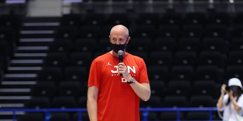 「FIBAアジアカップ2022」のメンバーから渡邊雄太や富永啓生(ネブラスカ大学)などが抜け、馬場雄大や比江島慎(宇都宮ブレックス)などが新たに合流。指揮官は「(長い合宿期間があったアジアカップの時とは)チームが全然違います。短い期間でいい練習ができましたが、いいチームを作れたかどうかはまだわかりません。心配なこともありますけど、楽しみです」と心境を語り、「誰が入っても同じバスケットをしたいのは間違いないです。このスタイルで、自分の力を出してほしいです」と期待を寄せた。
